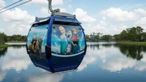 The Skyliner is Disney’s gondola system -a breezy, relaxing way to travel with amazing views that goes to EPCOT and Hollywood Studios. Each gondola is decorated with a different Disney movie theme and the cast members will allow you to wait for a certain theme to board with a smile!
